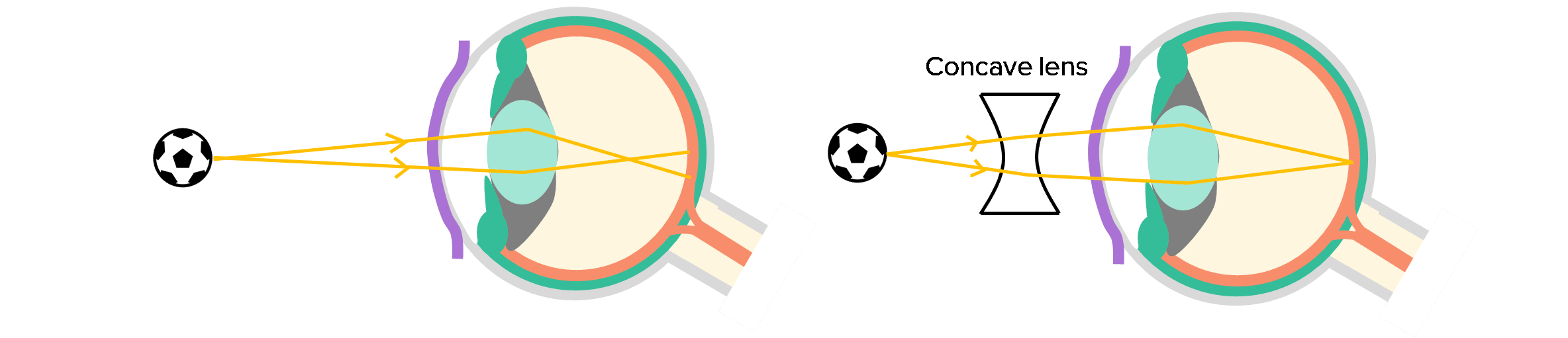 Short-sighted people struggle to see objects that are far away from them as the image is brought into focus in front of the the retina.