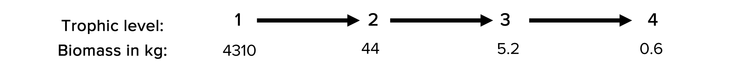 Example: Using the information from the food chain below, calculate the efficiency of biomass transfer from the second to the third trophic level.