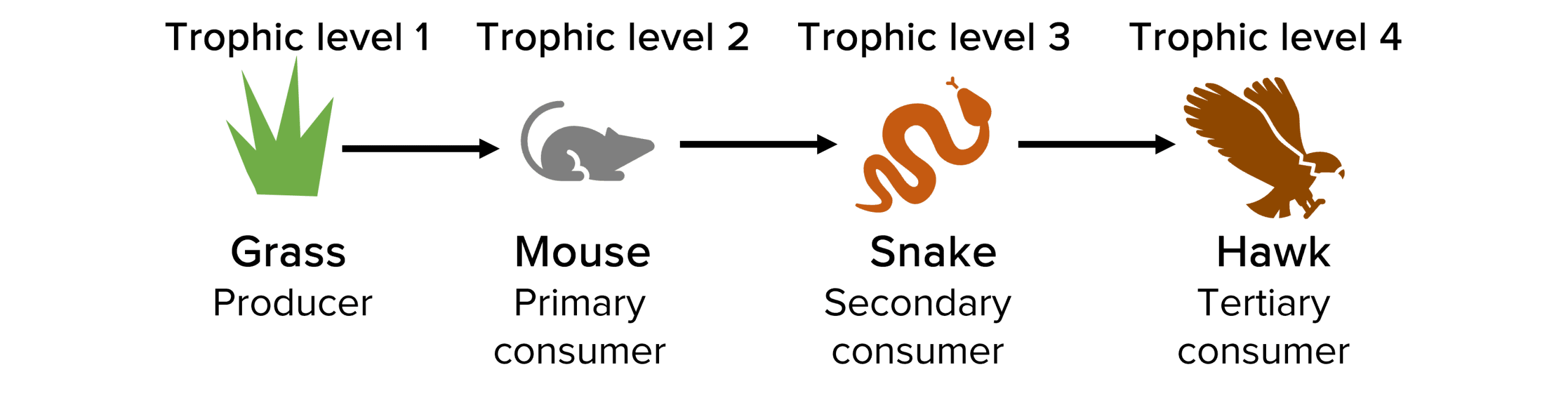 Trophic level 3 – secondary consumers: These are carnivores (meat eaters) that eat primary consumers.