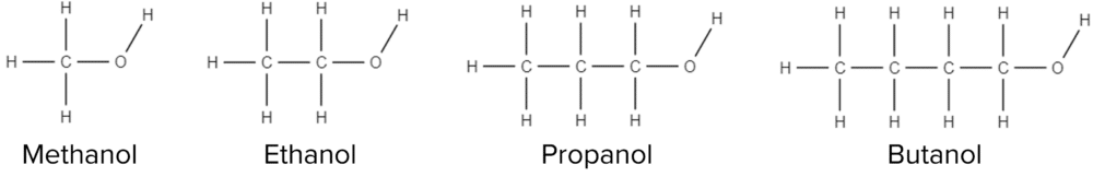Ethanol is one of the most commonly used of the alcohol series. It is used to produce alcoholic drinks, as fuels in small stoves, and as antiseptic sprays. It can be produced in a natural process called fermentation.