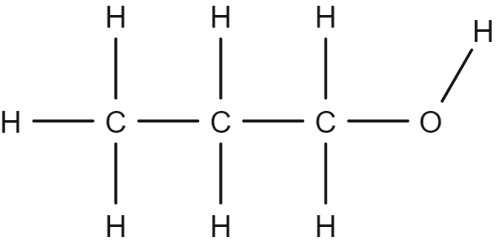 The molecular formula of propanol can be given as \text{CH}_3\text{CH}_2\text{CH}_2\text{OH}. This formula contains three distinct parts, each corresponding to one carbon atom from the alcohol chain. The \text{CH}_3 group will correspond to the end of the chain: