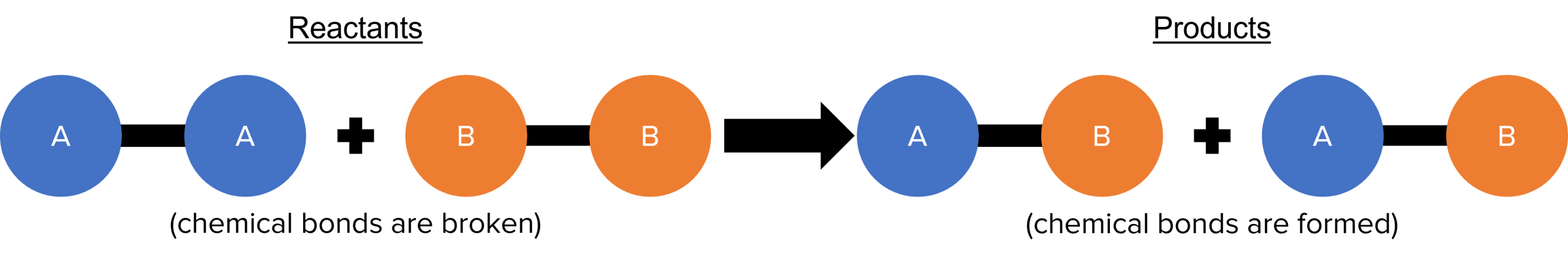 During the chemical reaction, the chemical bonds in the reactants are broken and new chemical bonds are made to form the products. The atoms themselves remain unchanged in the chemical reaction, only the bonding changes.