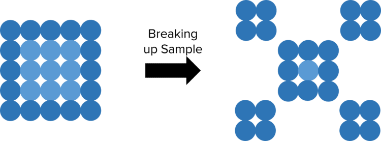 Most chemical reactions take place in the liquid or solution phases, where all the particles of the reactants are able to move around and collide. However, in some reactions (such as the thermal decomposition of calcium carbonate) one or more of the reactions is in the solid phase. In these cases, the majority of the particles of the solid reactants are found in the centre of the solid. These particles are unable to react as no particles of the other reactants can collide with them.