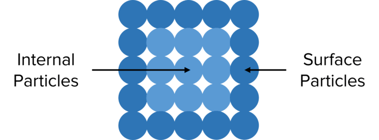 The only particles of a solid reactant that can react are those that are found at the surface of the solid.