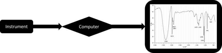 These chemical methods are usually made up of two components. The first is the instrument itself, for example an Infra Red (IR) spectrometer. The spectrometer automatically preforms a small experiment on a sample, generating data on one or more of the sample’s properties. This data is then fed into a computer where it is analysed. This analysis then produces either a table or a graph that can be interpreted and analysed further by a scientist.