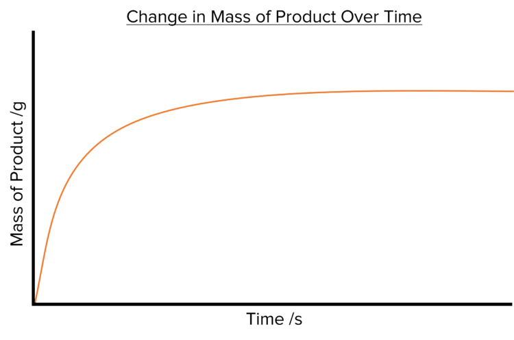 Question 4: A student carries out a reaction to measure its rate of reaction. The student measures the mass of the product produced and plots this on a graph against time in seconds. The graph is displayed below: