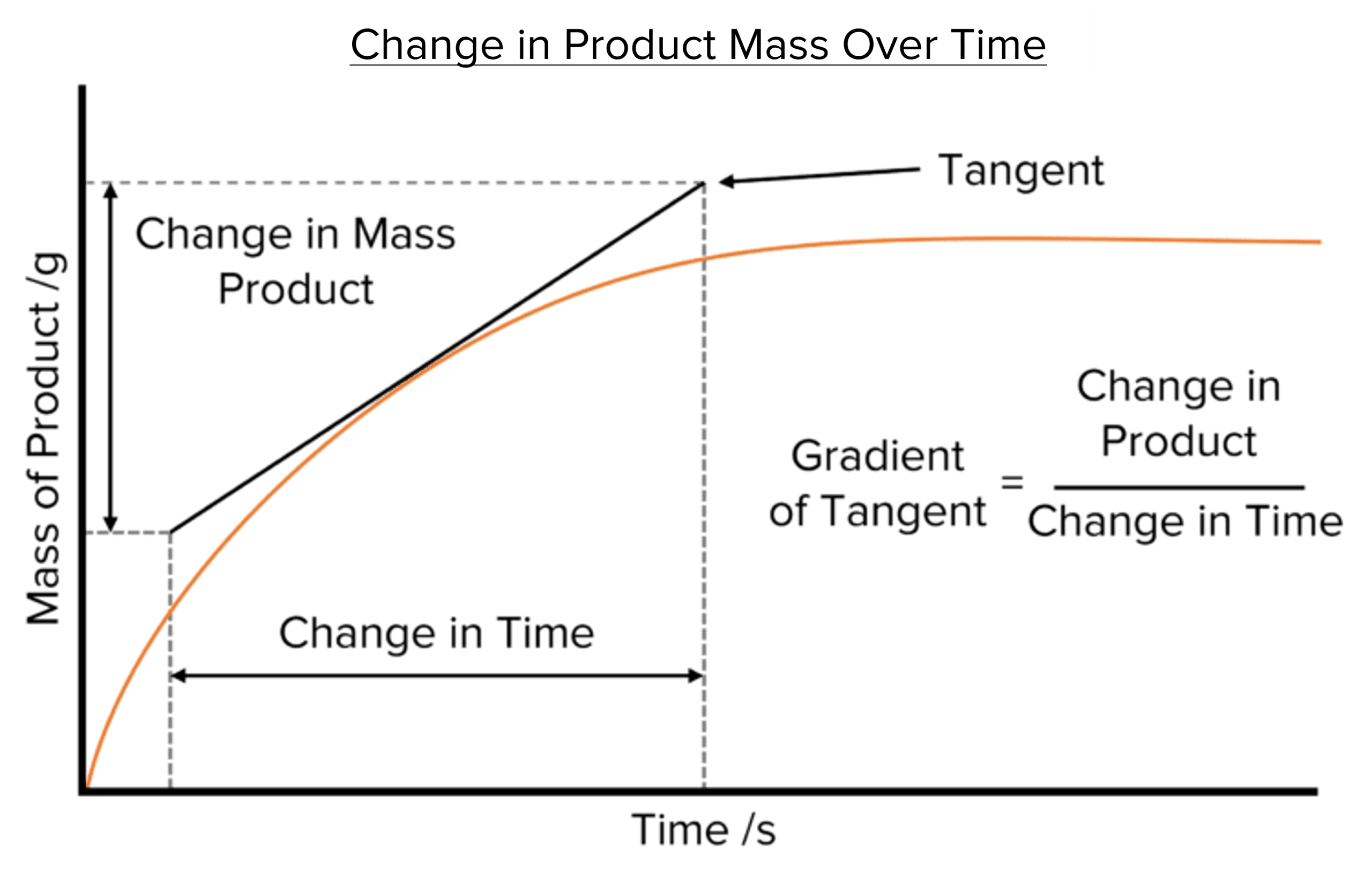 \text{Rate of Reaction}=\text{Gradient of Tangent}=\frac{\text{Change in Amount}}{\text{Change in Time}}