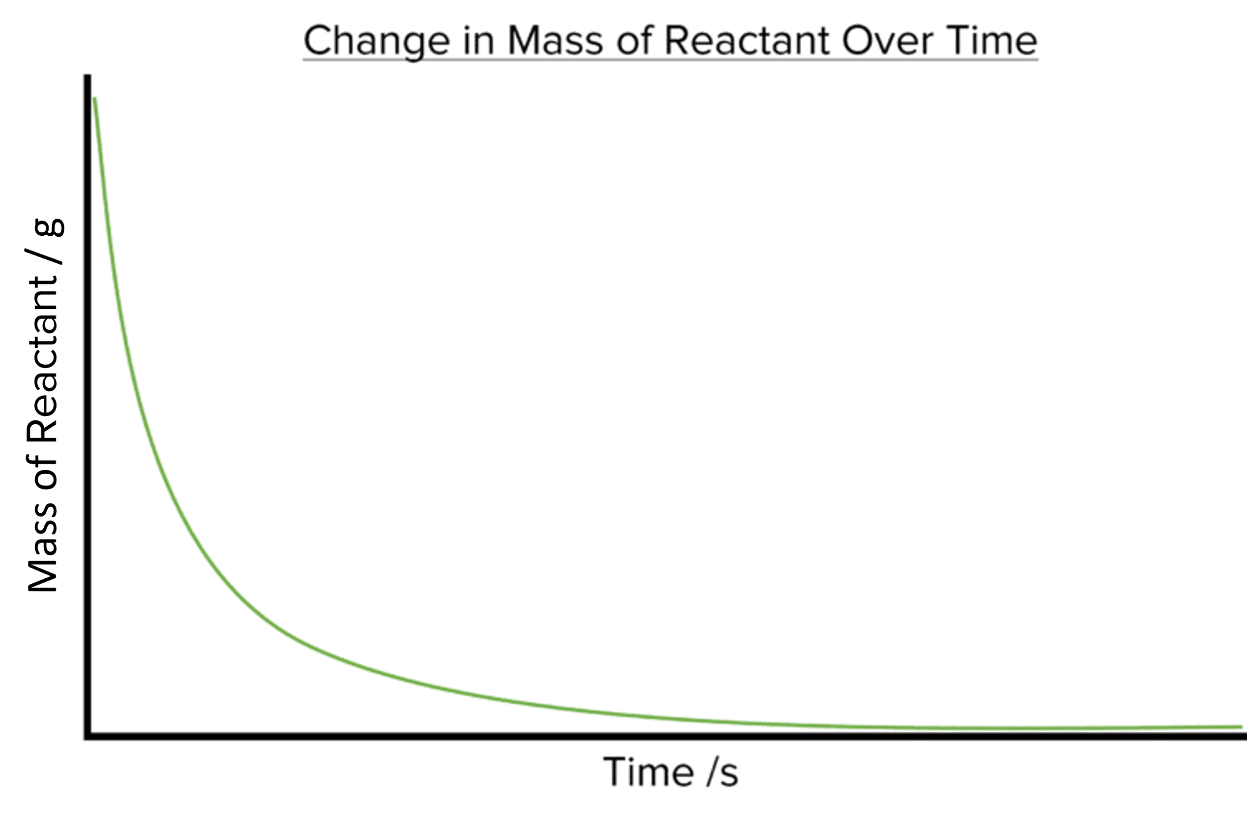 The rate of a chemical reaction can be investigated by constructing a rate graph. These graphs show the amount of a given substance in the reaction over a given amount of time. Rate graphs tend to be curves, as the rate of a chemical reaction will change as the reaction progresses. The shapes of these curves will depend on whether we are looking at changes in the reactants or at changes in the products.