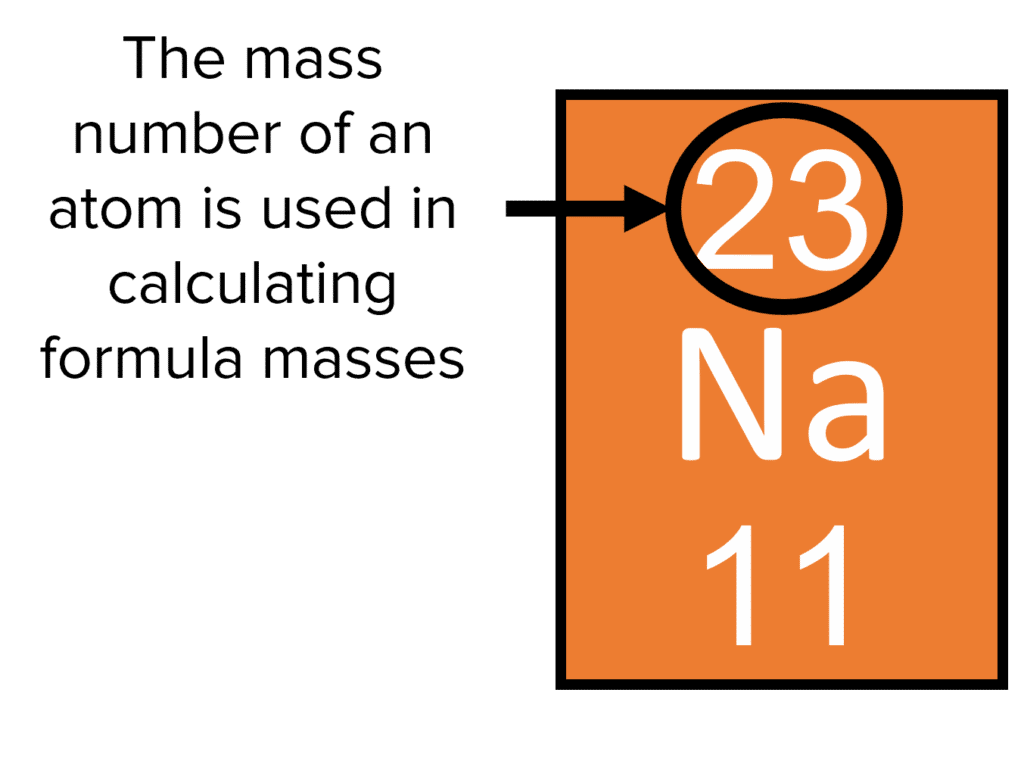 Remember, the relative atomic mass is (usually) the larger of the two numbers next to an elements atomic symbol. It is (usually) found in the top of the square an element occupies in the periodic table. Once we have all the atomic masses, we add these up to get the formula mass of the molecule.