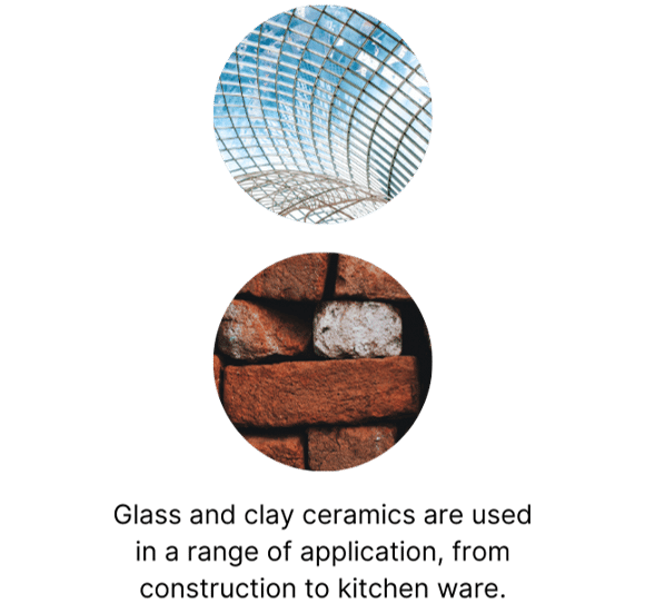 Two common examples of ceramics are glass and clay. Glass ceramics can be formed in a number of ways. Most of glass we use day-to-day is a a ceramic known as soda-lime glass, mixture of sand, sodium carbonate, and limestone.