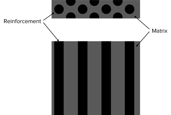 Composites are combinations of two or more materials. One material is used a matrix or binder, surrounding fibers of the other. These fibers are known as the reinforcement and are added to make the composite stronger.