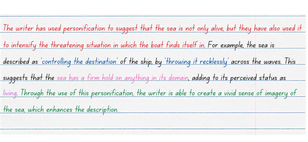Once you have identified some language features, think about how they enhance the description (of the sea in our example above)…