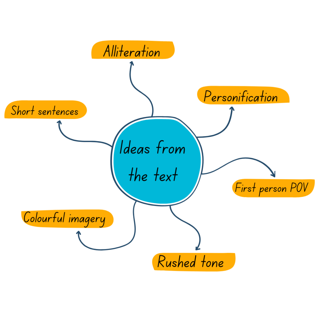 In the reading section, make a mind map of some general ideas. This can include key points from the text, or a list of language and structural techniques.