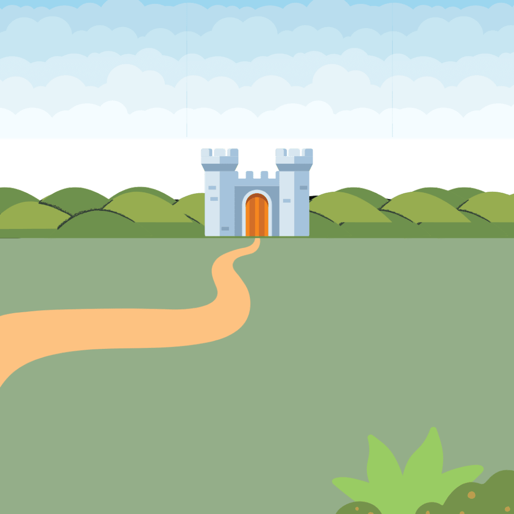 “The castle was nestled in a wide valley between two hills, dotted endlessly with violet flowers and flowing trees that, when the wind came tumbling down the valley, danced like waves in the ocean.“