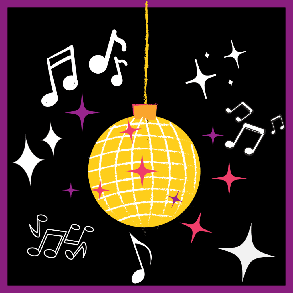 We can also say that the light, and, by extension, the disco ball is personified through being given human characteristics such as “dancing”, elevating the feeling of groove and dance present within the club.