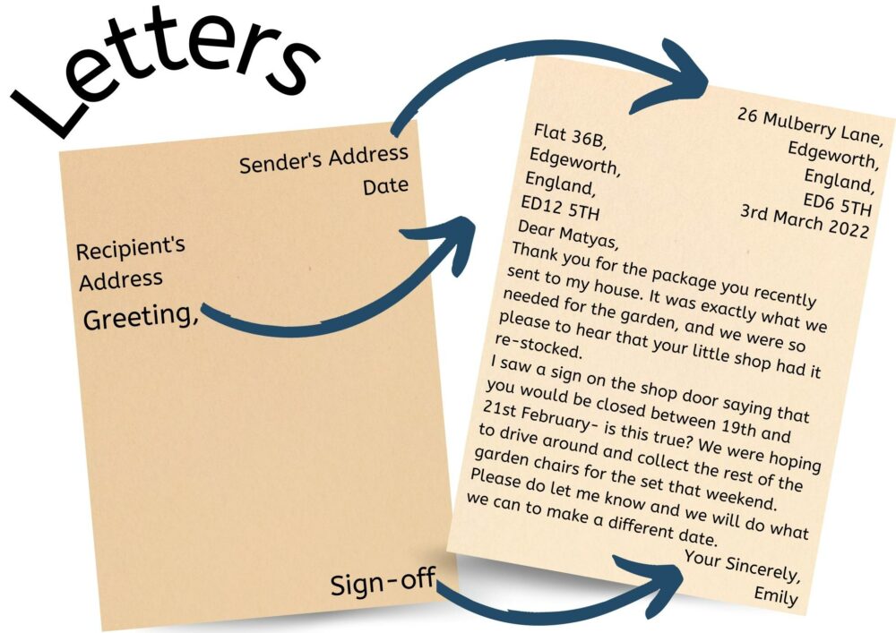 It also has a particular structure which you need to follow and use, so make sure that you include the following four features if you are asked to write a letter in your GCSE English Language Exam: