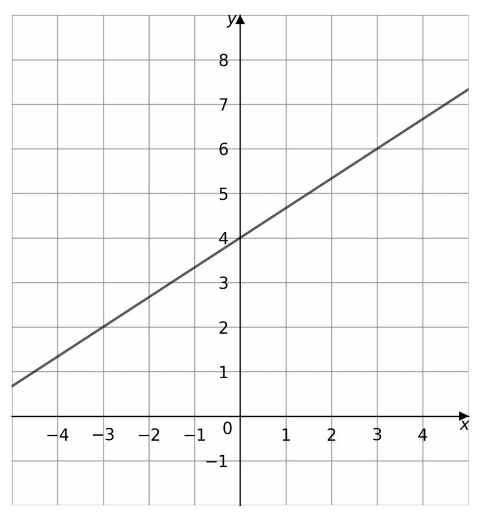 The graph crosses the y-axis at the point (0,4), so the y-intercept, c, is equal to 4. We must now find another point to find the gradient.