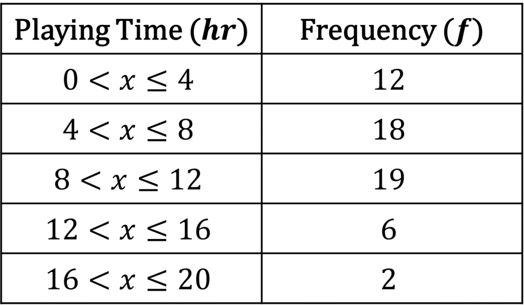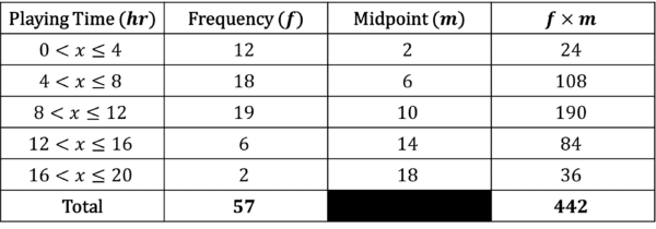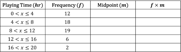 Use the table to estimate the mean time spent playing video games.