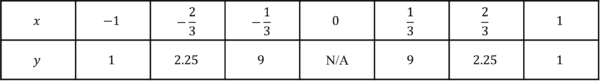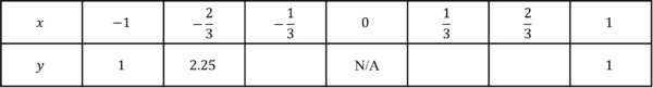 Missing from the table are the y values when x = -\dfrac{1}{3}, \dfrac{1}{3} and \dfrac{2}{3}