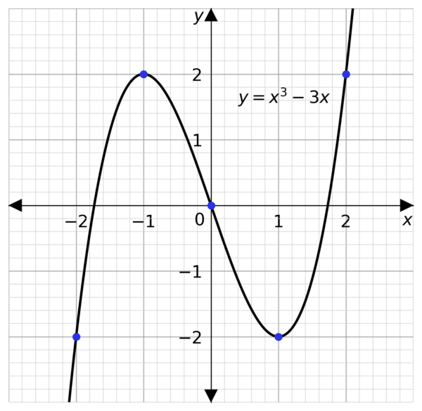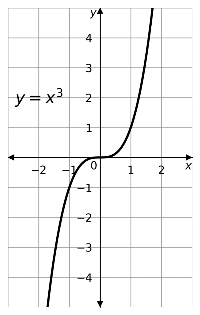 This function has a stationary point (a point where the function is neither increasing nor decreasing) at x=0.