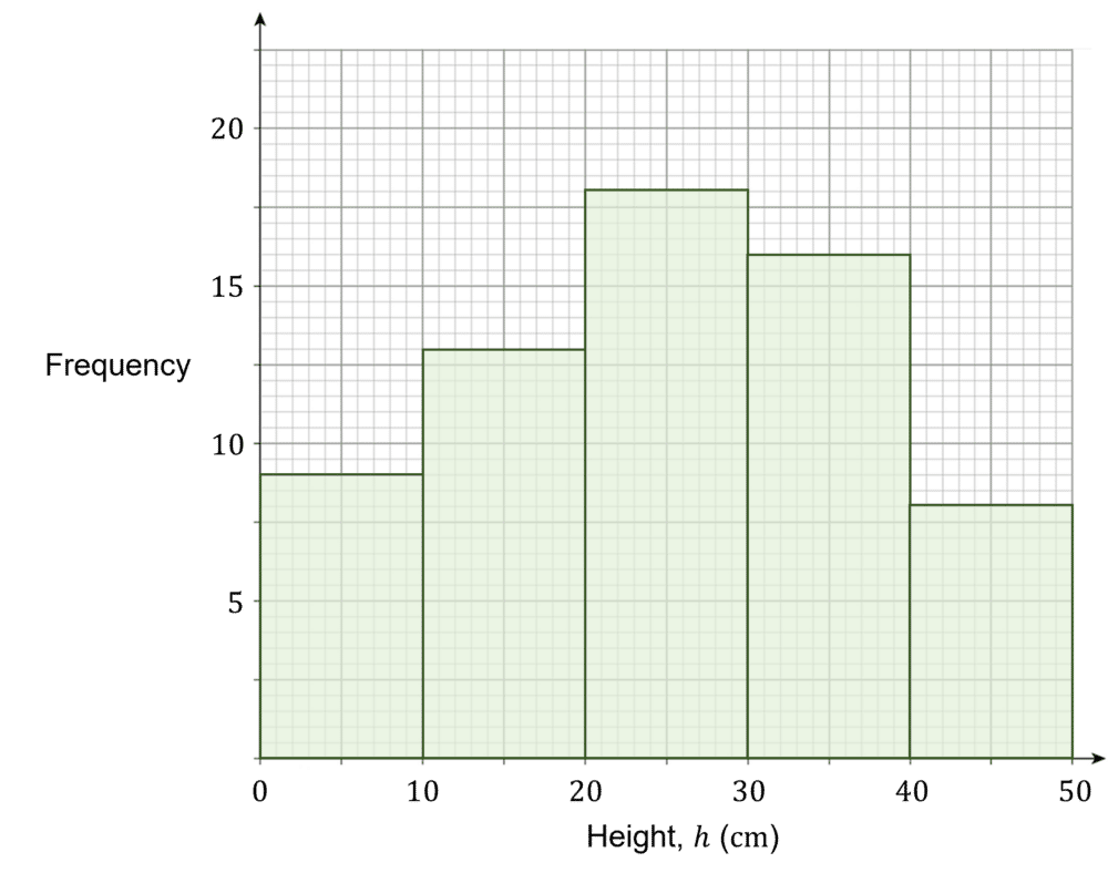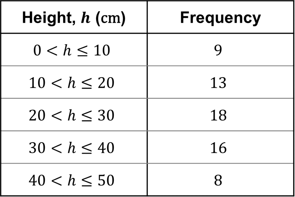 As mentioned above, histograms are used to display continuous data, which will be given to you in the form of a grouped frequency table. The grouped frequency table on the right shows the height of some different plants.