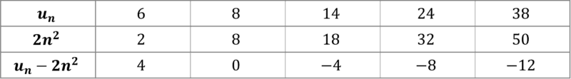We then subtract the sequence with nth term 2n^2 away from our original sequence, u_n.