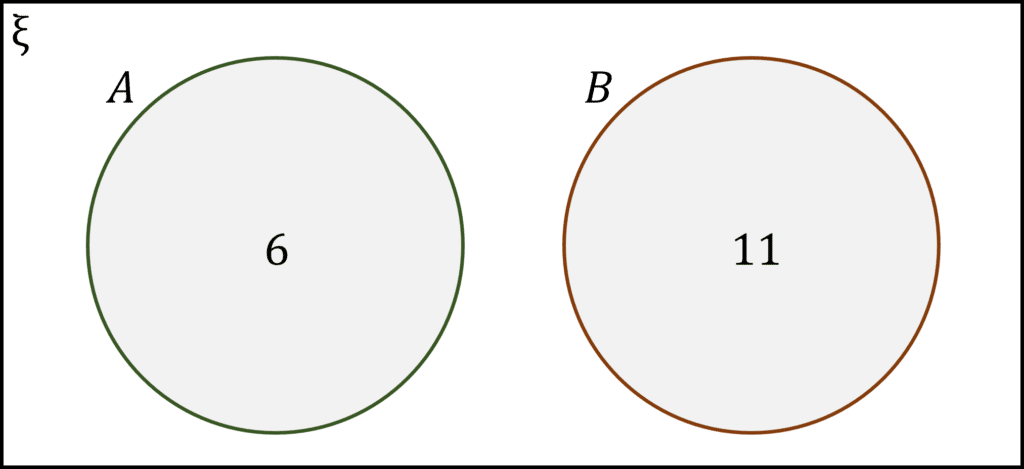 The circles in a Venn diagram are labelled by a letter, which also corresponds to the set. For sets representing the quantity of something, e.g. the number of girls in a class, a number will be inside the circle.