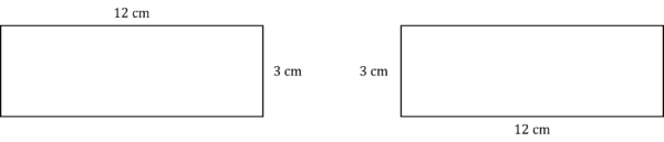 For example, all of these rectangles are congruent as the all have sides 12\text{ cm} and 3\text{ cm}, and right angles.