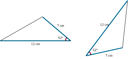 In all cases, if two triangles have two sides of equal length with an angle of the same size between them, they are congruent.