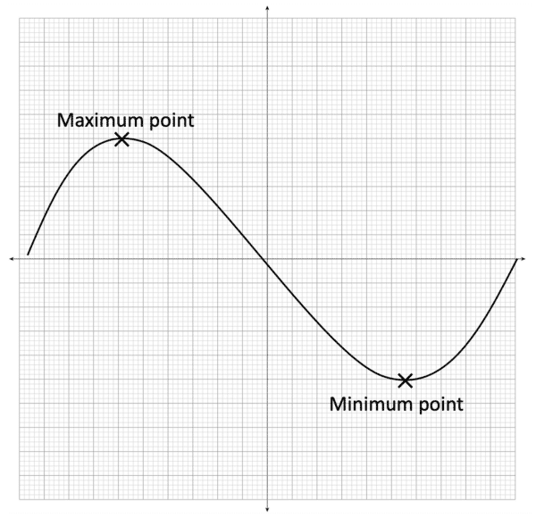 The curve below has 2 stationary points, one that is a maximum point, and one that is a minimum point.