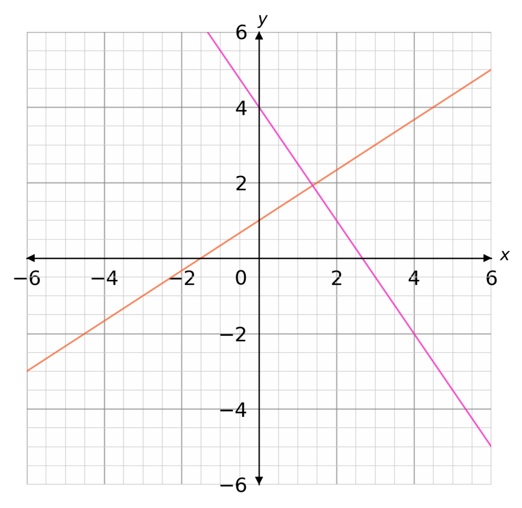 1=-\dfrac{3}{2}(2)+c \rightarrow c=4 \rightarrow \textcolor{#f21cc2}{y=-\dfrac{3}{2}x+4}Parallel and Perpendicular Lines Example Questions