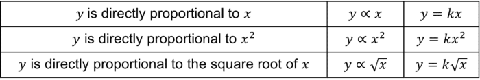 or y is directly proportional to x, where k is the ‘constant of proportionality’.