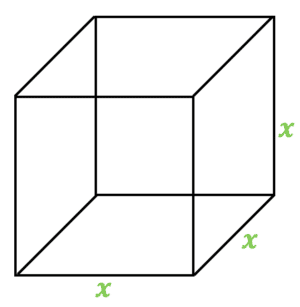 Area of one face : \textcolor{#00d865}{x} \times \textcolor{#00d865}{x} = \textcolor{#00d865}{x^2}