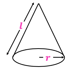 \textcolor{#f21cc2}{l} \rightarrow slanted height of the cone