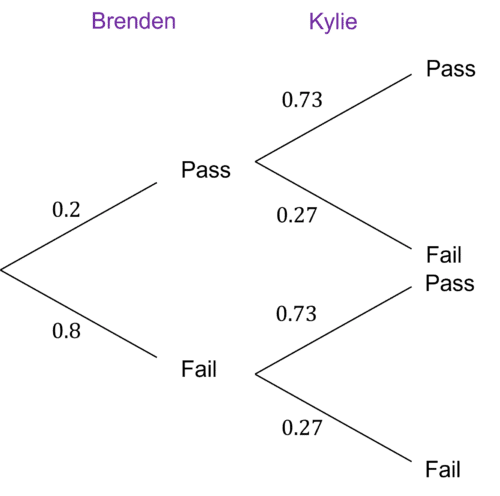But we need to work out the probabilities of Brenden and Kylie failing their exams (remember, probabilities add to 1):