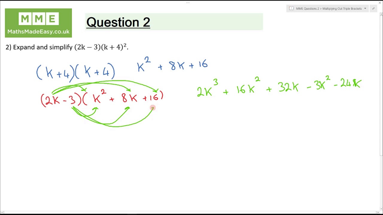 Question 2: Expand and simplify (2k-3)(k+4)^2