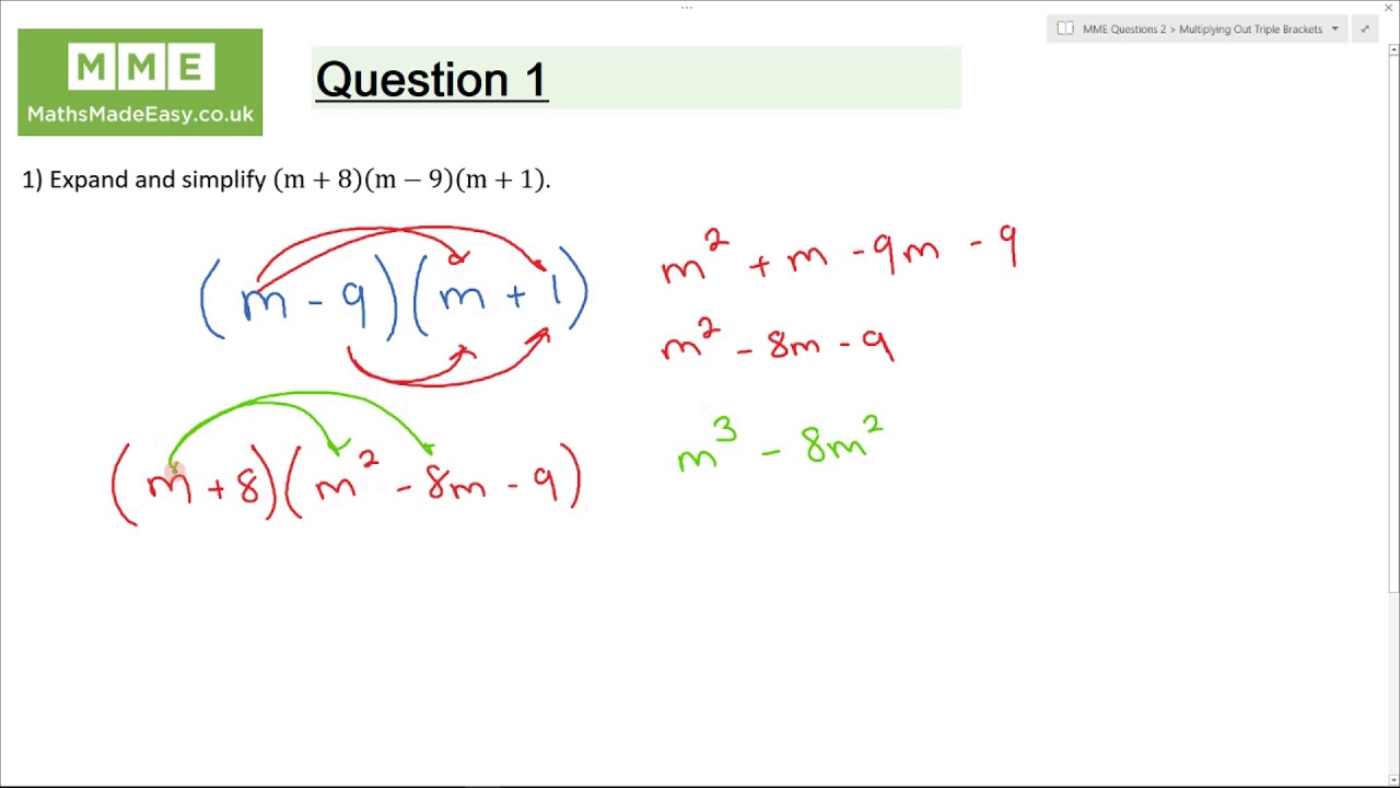 Question 1: Expand and simplify (m+8)(m-9)(m+1)