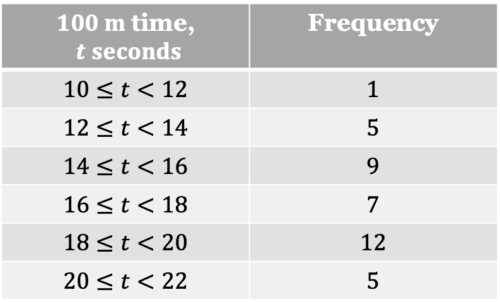 A group of students ran a 100 metre race, the times achieved by the students are summarised in the table below.