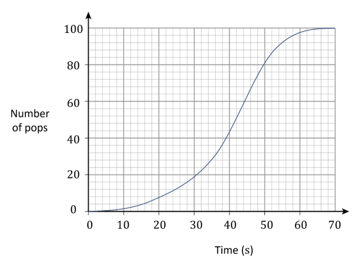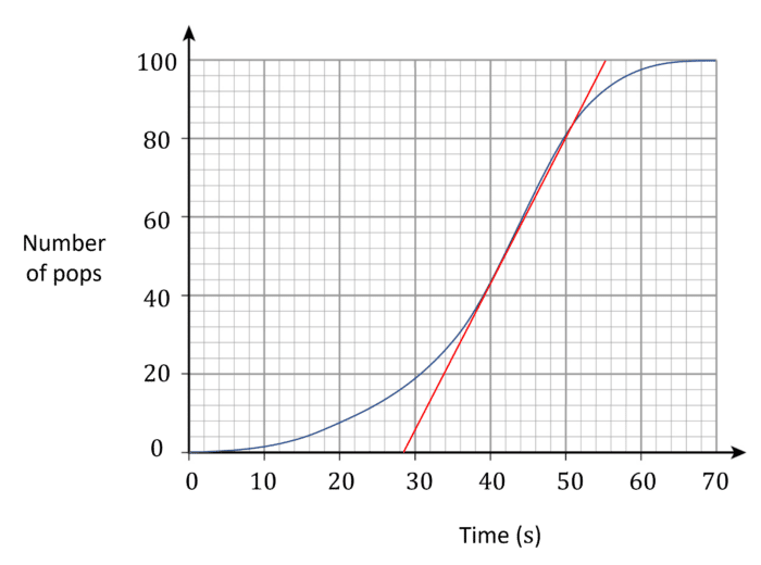 ii) By drawing a tangent, or otherwise, find the instantaneous rate of pops at 40\text{ s}.