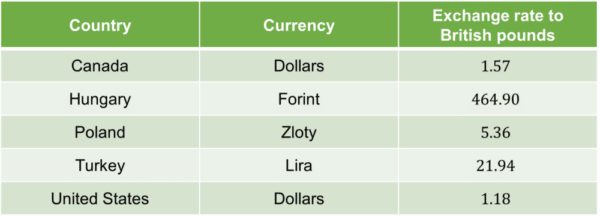 All countries’ currencies have varying values, so we often have to convert them to compare them to the British pound (£).