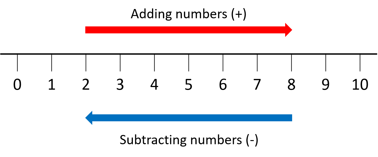 When we add a negative number, it is the same as taking away a positive number. For example: