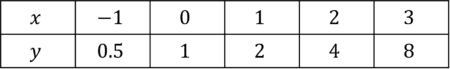 Using the equation y= 2^x draw a table of coordinates from x = -1 to x=3. Use the values to plot the graph between these x values.