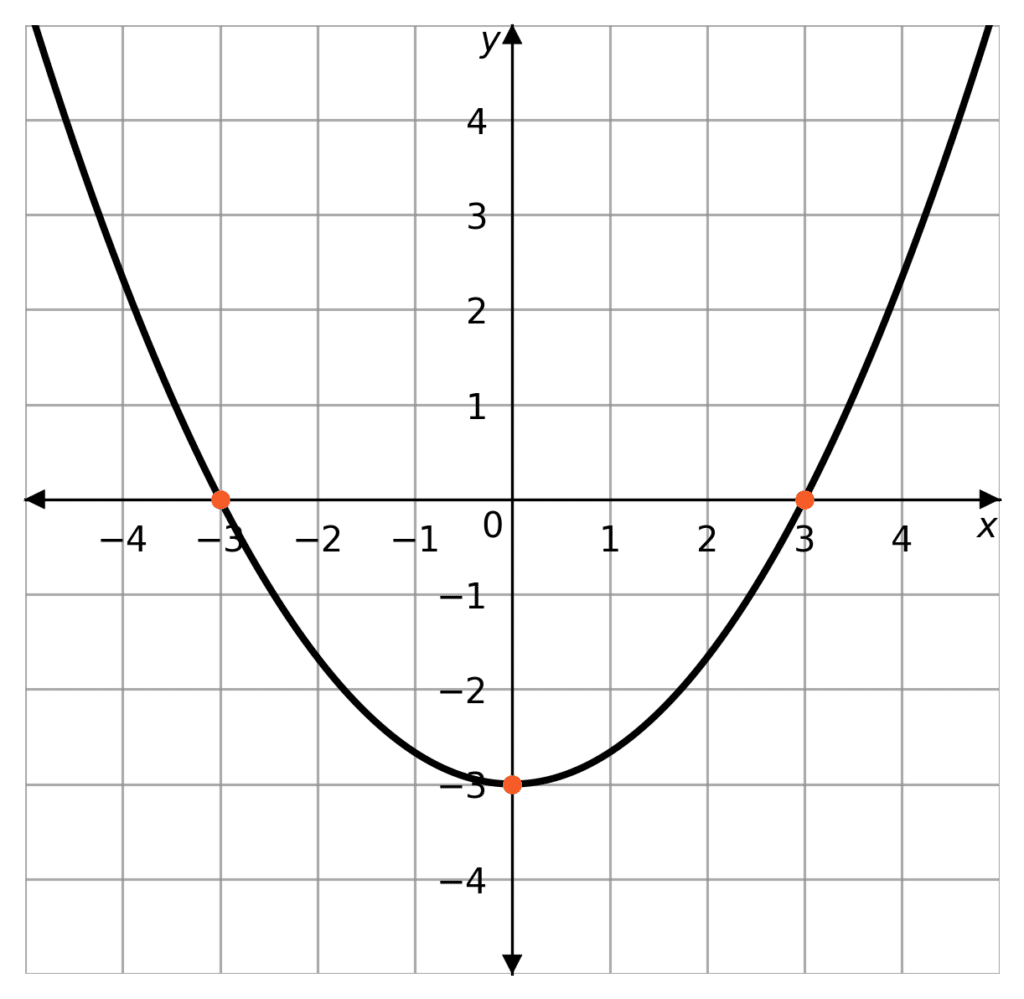 In this example, the roots of the quadratic can be interpreted graphically as the points that the curve crosses the x-axis. Giving us