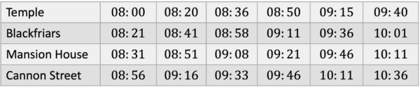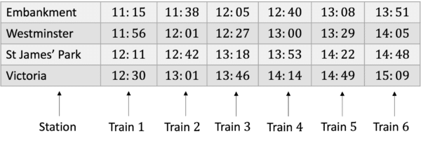 For example, here is a train timetable: