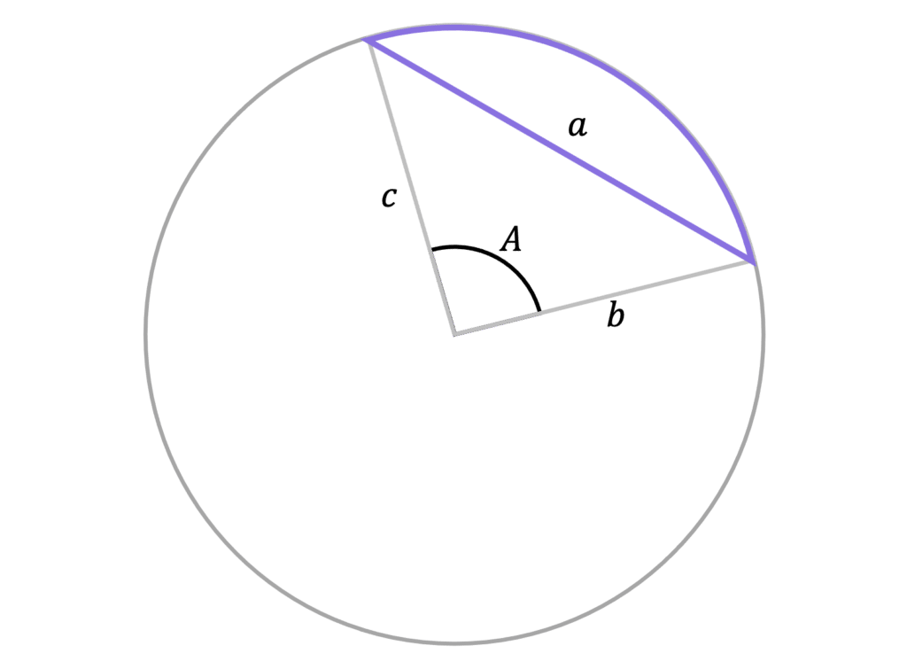 We may also need to work out the chord length if this is not given. We can do this by using the angle size and the length of the radii to use the Cosine rule: