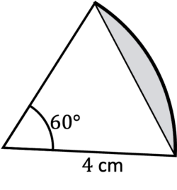 Area of segment =\dfrac{8}{3}\pi - 4\sqrt{3} = 1.45\text{ cm}