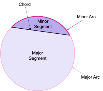 For segments, the segment that is smaller than half of the area of the circle is the minor segment, enclosed by a chord and the minor arc, and the remainder of the circle is the major segment, as follows:
