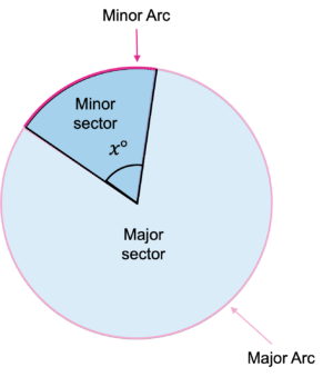 For sectors, the minor sector is the always the sector that has an angle, (x\degree) at the centre smaller than 180\degree, and the remainder of the circle is the major sector.