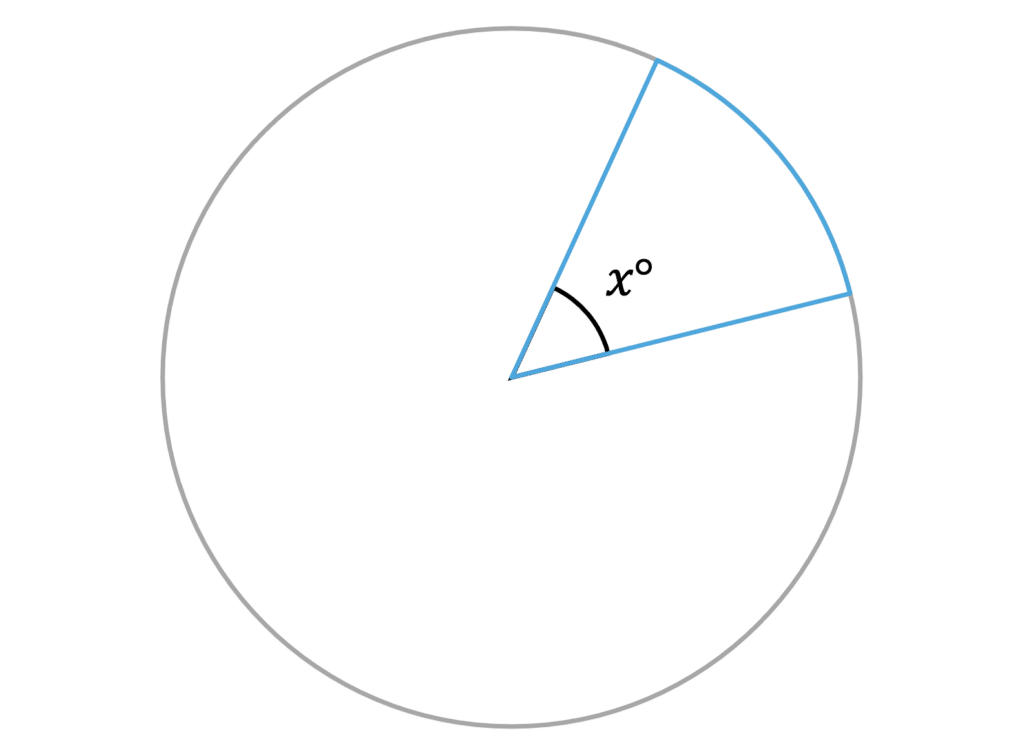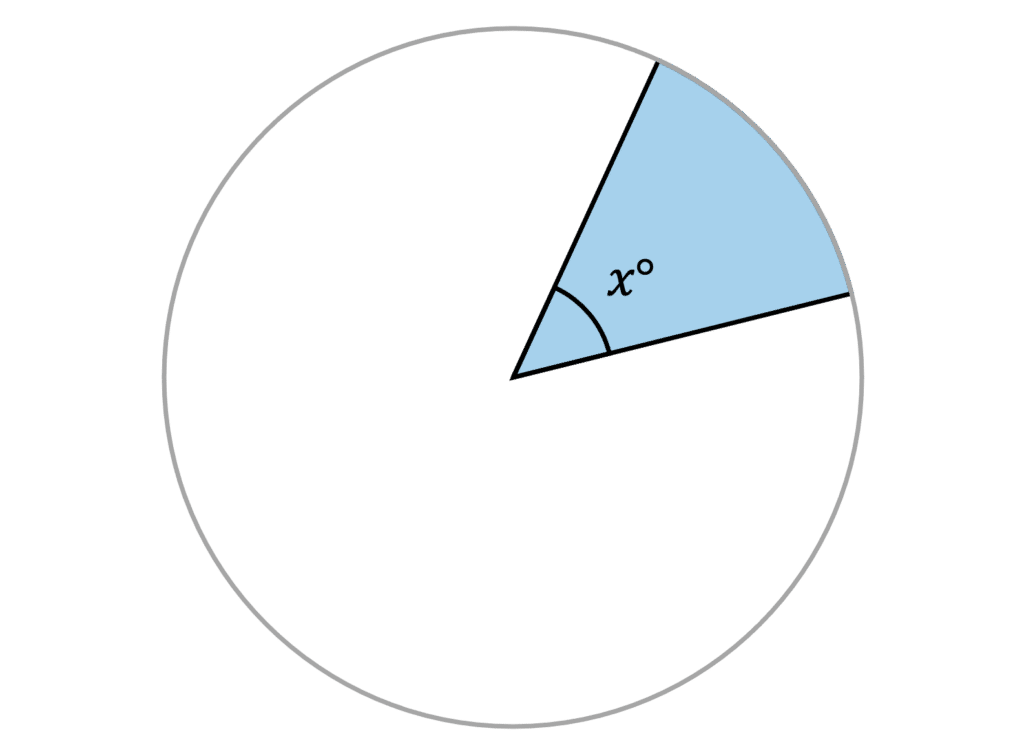 To calculate the area of a sector, you will again need the angle in the centre, as well as the area of the full circle.