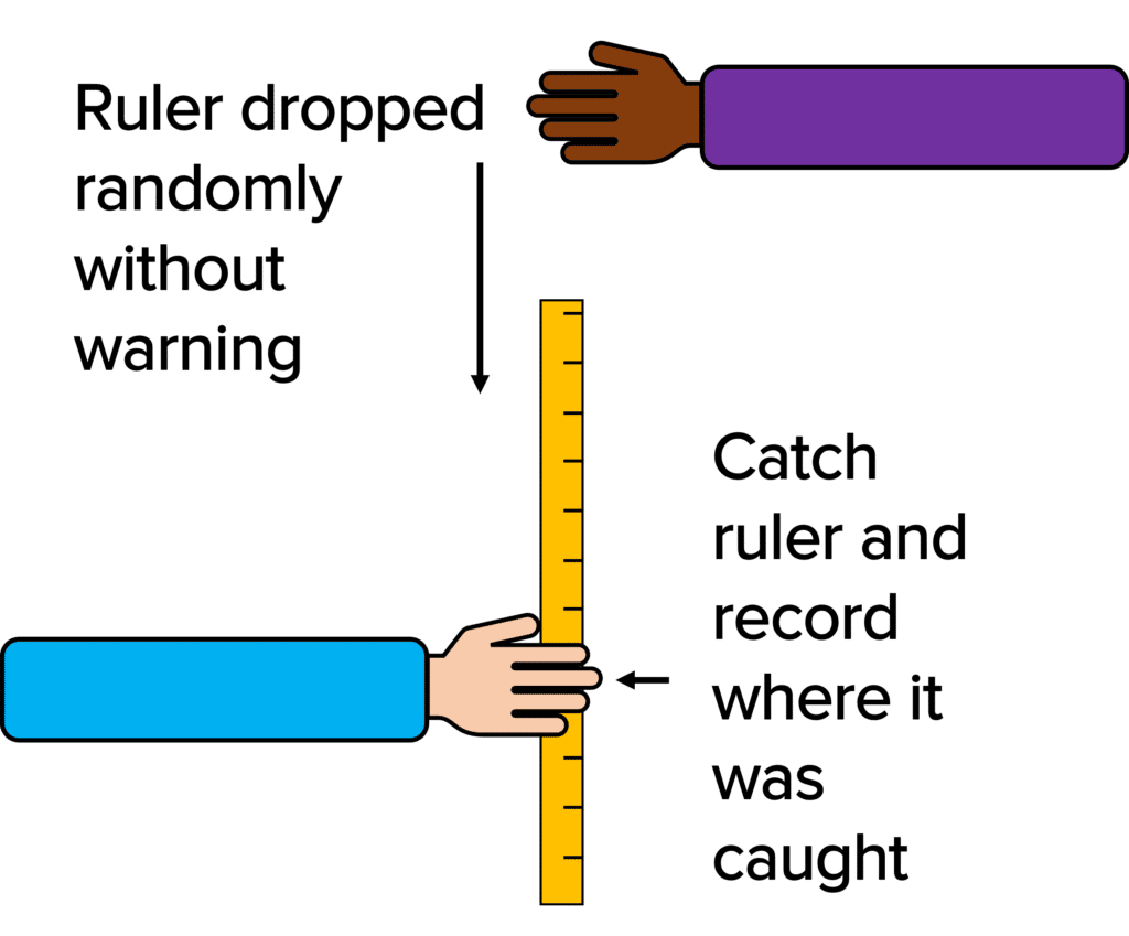 - Without warning and randomly, the person holding the ruler should drop it and you must try and catch it as quick as you can.